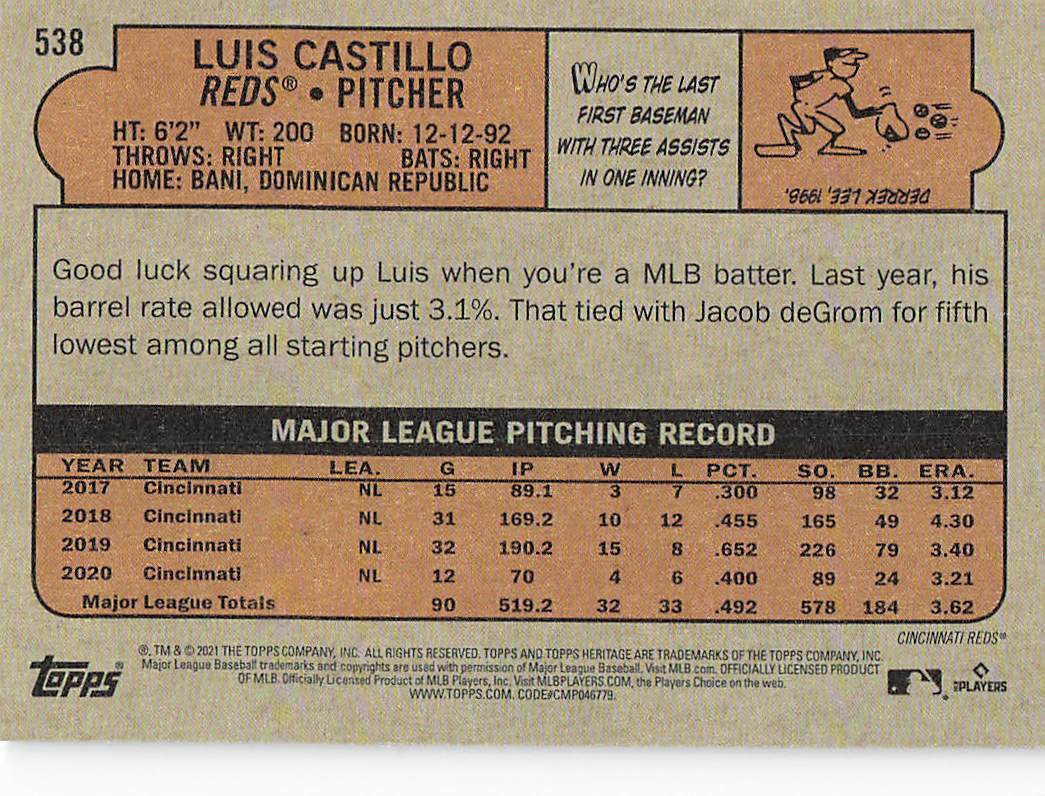 2021 Topps Heritage Baseball Luis Castillo #538
