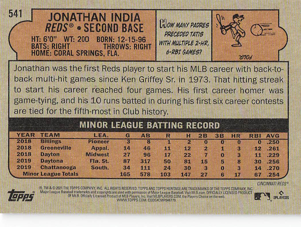 2021 Topps Heritage Baseball Jonathan India #541 RC