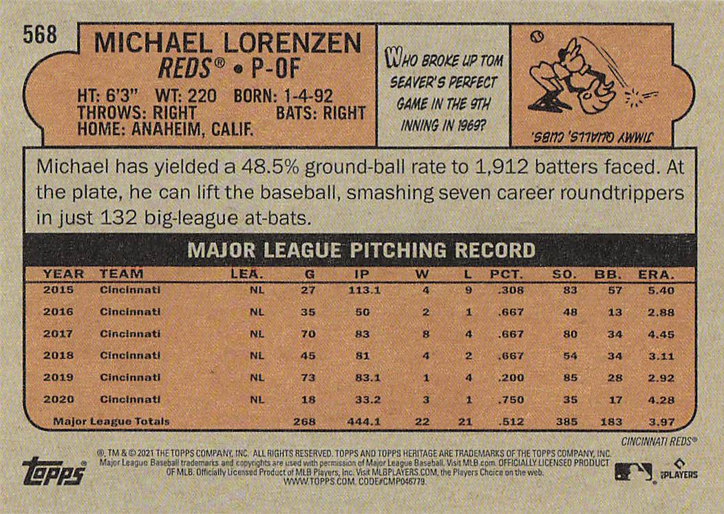 2021 Topps Heritage Baseball Michael Lorenzen #568
