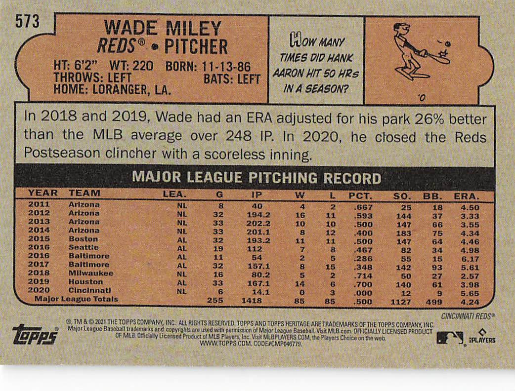 2021 Topps Heritage Baseball Wade Miley #573
