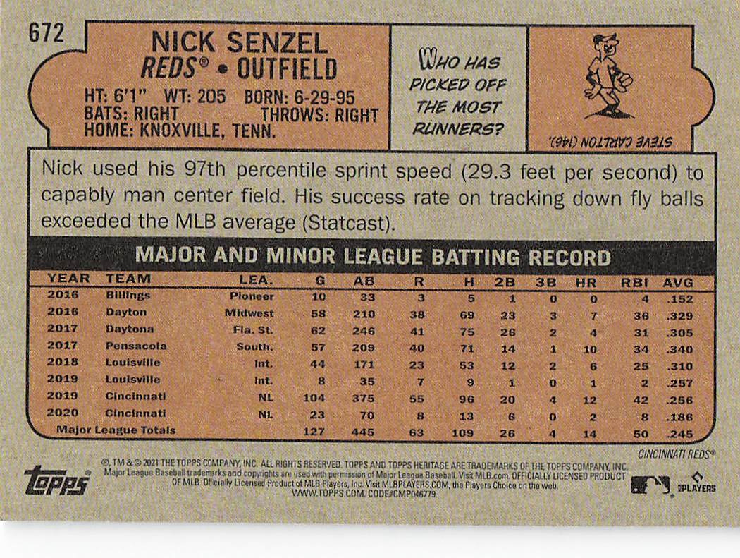 2021 Topps Heritage Baseball Nick Senzel #672