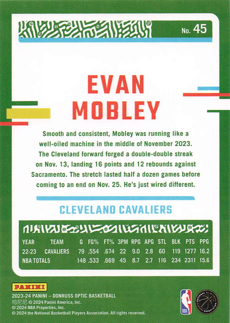 2023-24 Donruss Optic Basketball Evan Mobley #45