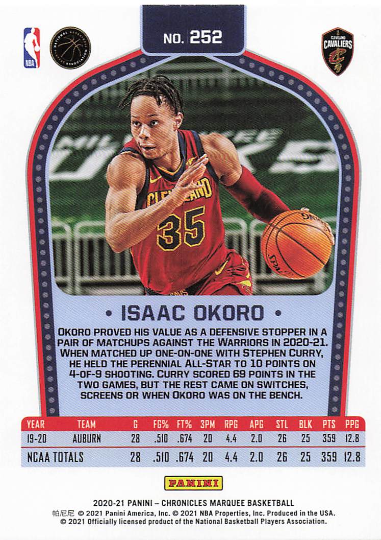 2020-21 Panini Chronicles Marquee Isaac Okoro #252 RC