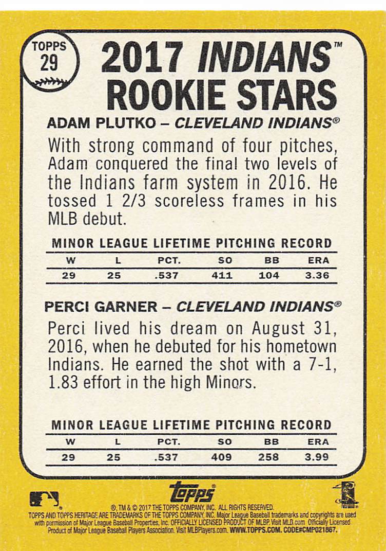 2017 Topps Heritage Rookie Stars Adam Plutko - Perci Garner #29 RC