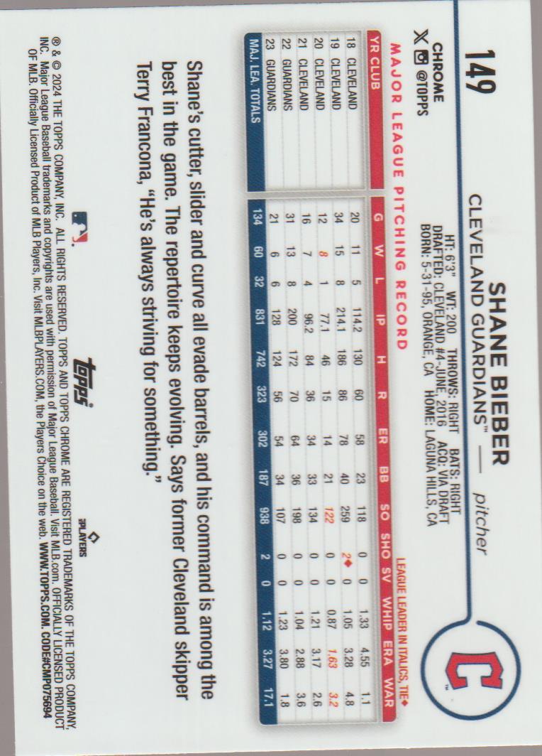 2022 Panini Mosaic Silver Prizm Shane Bieber #195