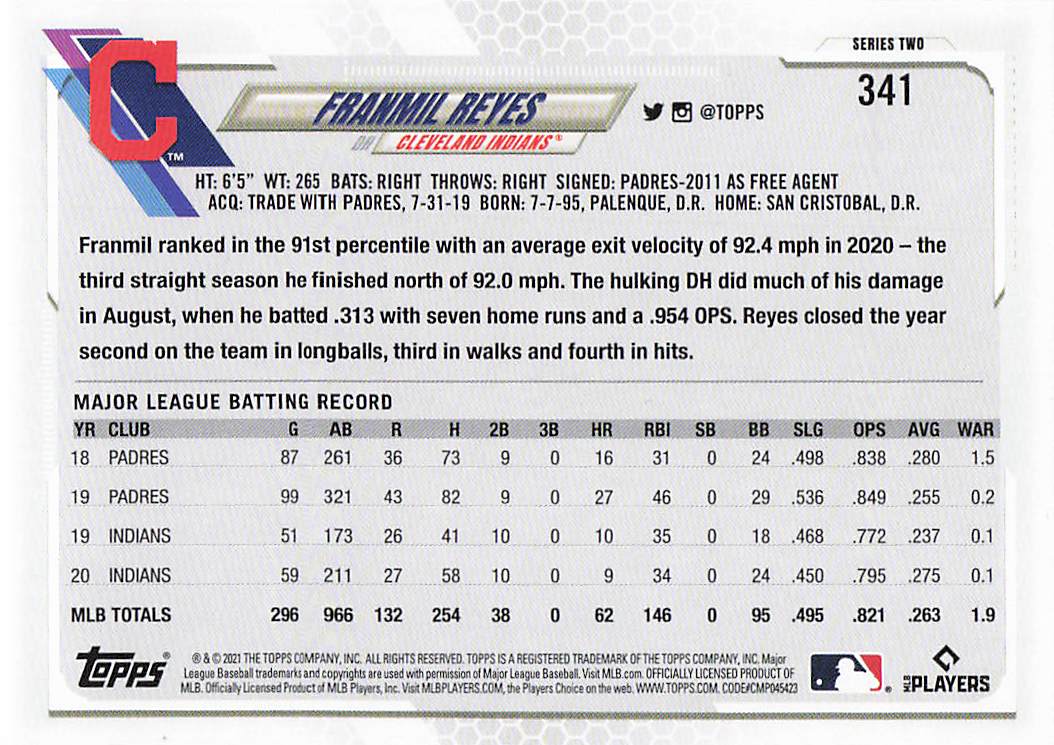 2021 Topps Series 2 Rainbow Foil Franmil Reyes #341