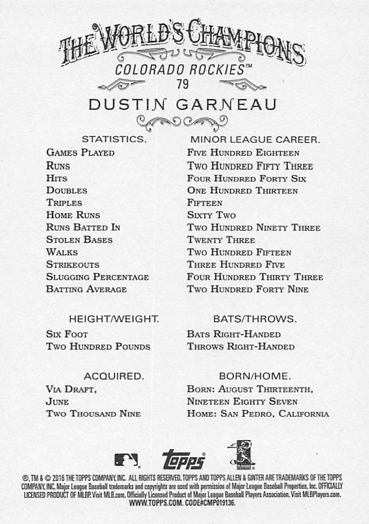 2016 Topps Allen & Ginter Dustin Garneau #79 RC