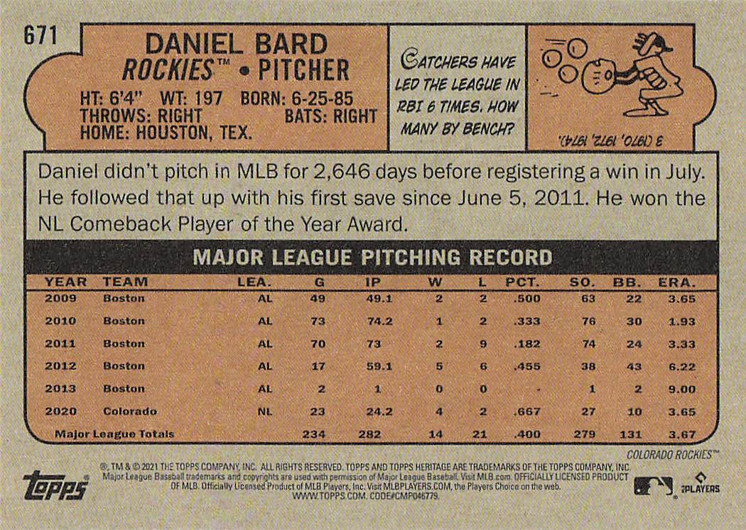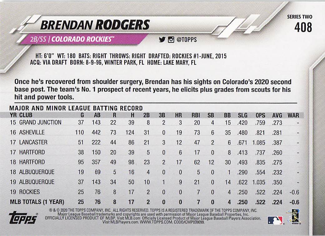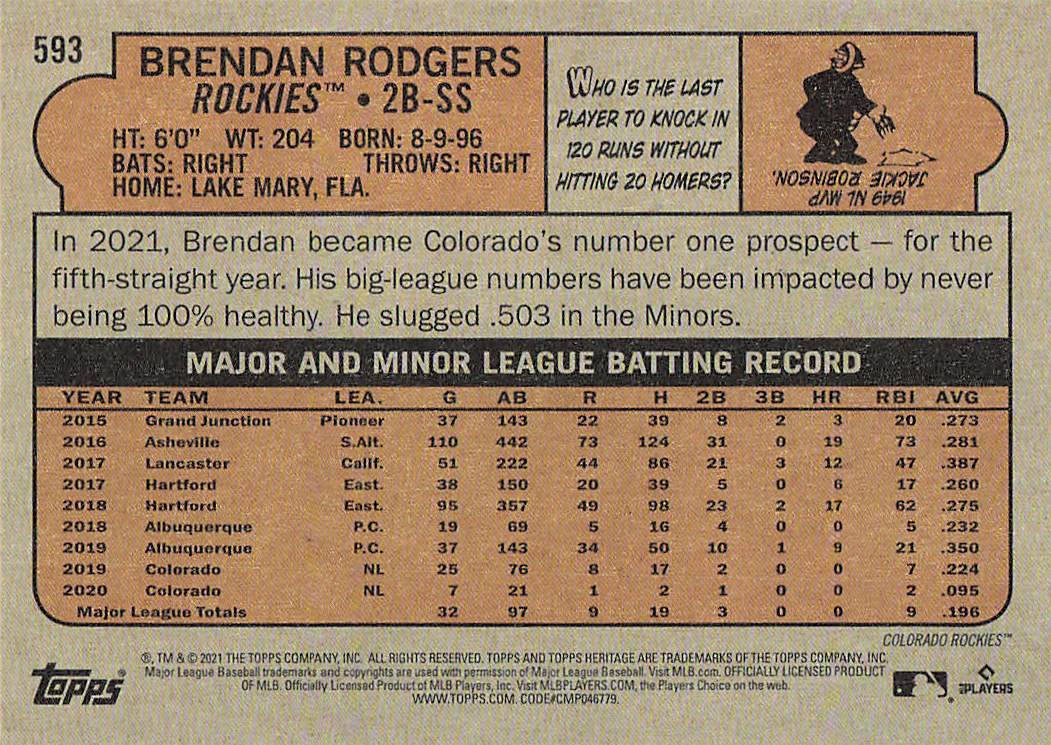 2021 Topps Heritage Baseball Brendan Rodgers #593