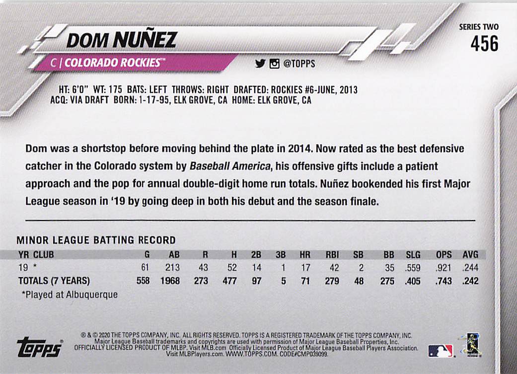 2020 Topps Series 2 Dom Nuñez #456 RC