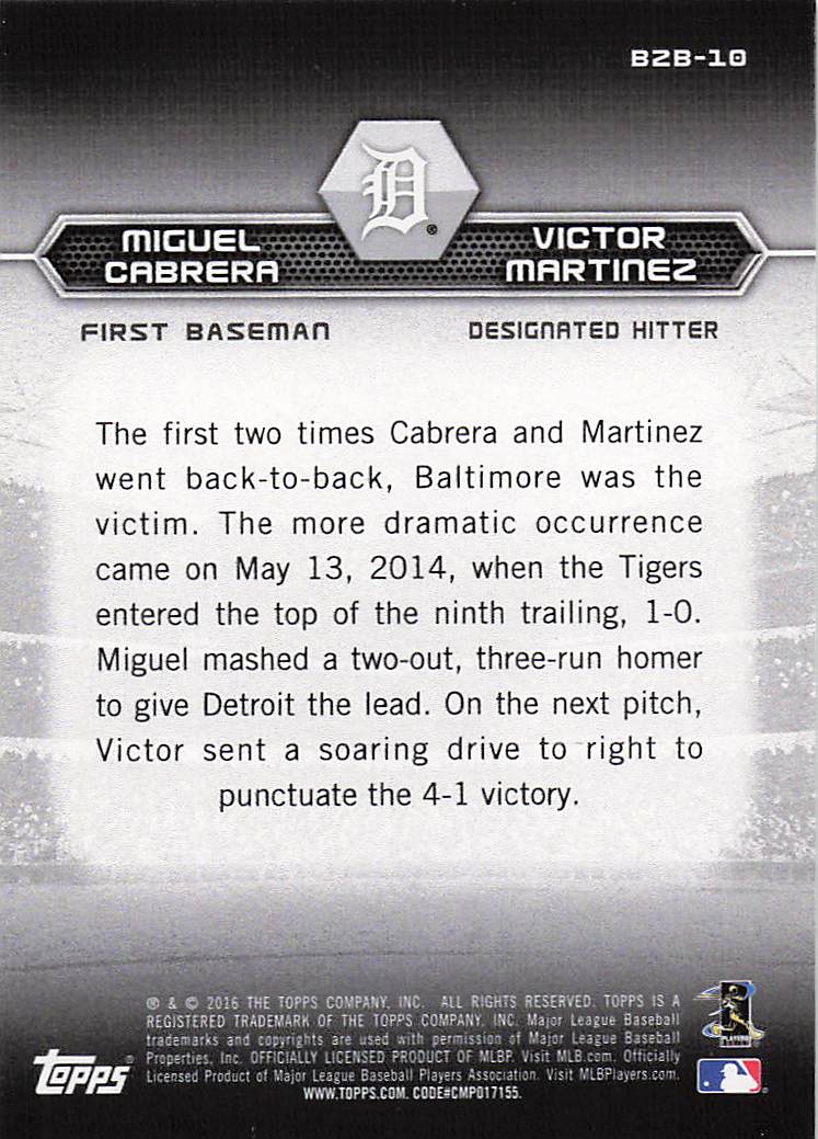 2016 Topps Back-To-Back Miguel Cabrera - Victor Martinez #B2B-10