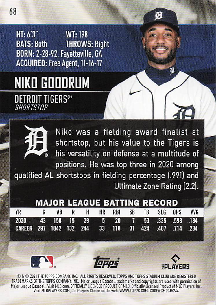 2021 Topps Stadium Club Black Foil Niko Goodrum #68