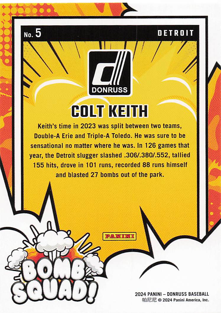 2024 Donruss Baseball Bomb Squad Colt Keith #5