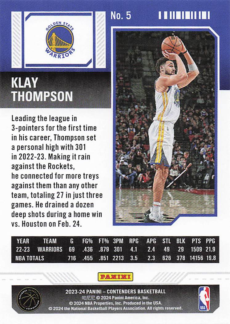 2023-24 Panini Contenders Basketball Klay Thompson #5