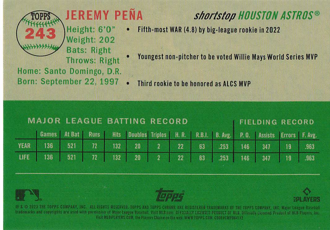 2023 Topps Chrome Platinum Anniversary Baseball Jeremy Peña #243