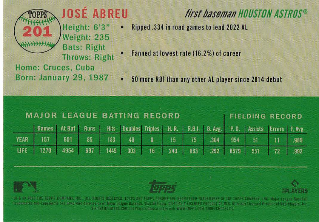 2023 Topps Chrome Platinum Anniversary Baseball José Abreu #201