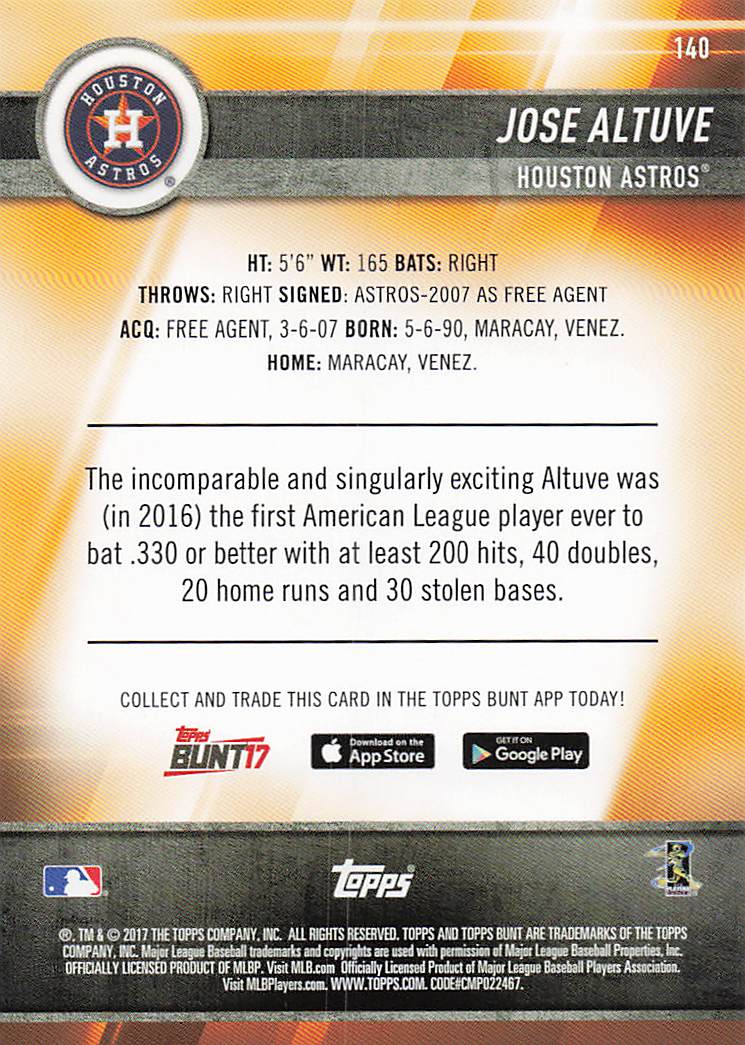 2017 Topps Bunt Blue Jose Altuve #140