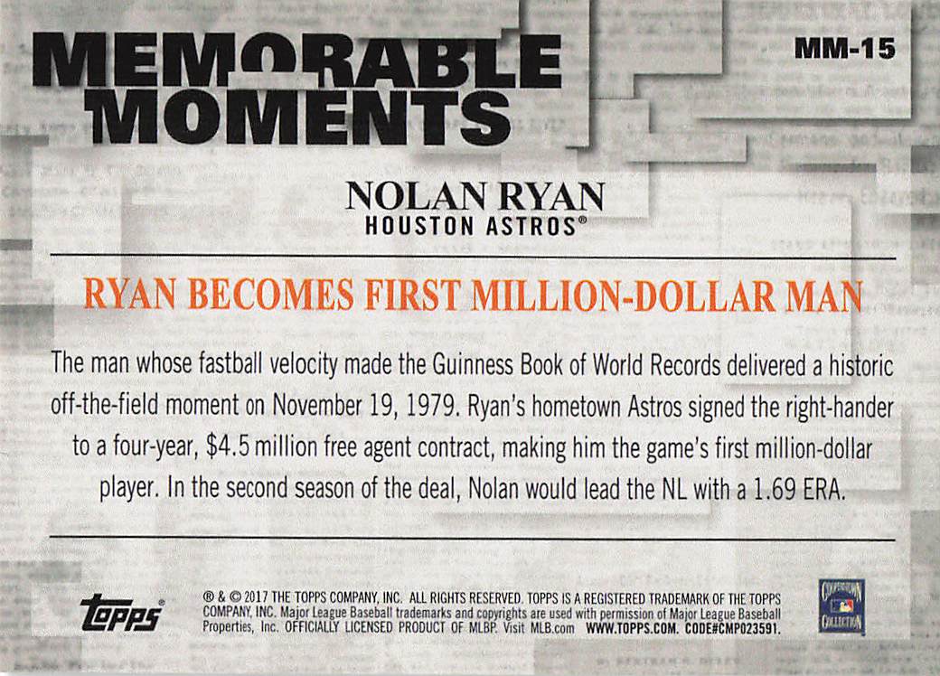 2017 Topps Memorable Moments Nolan Ryan #MM-15
