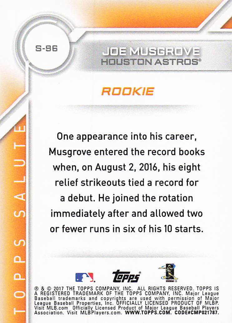 2017 Topps Salute Joe Musgrove #S-96