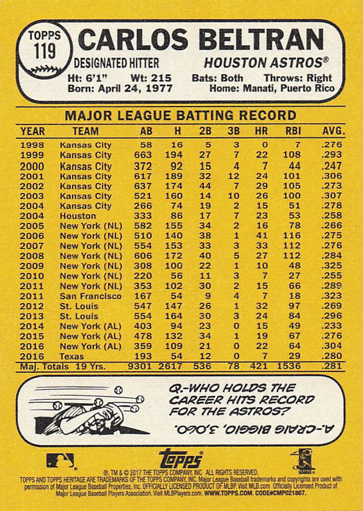 2017 Topps Heritage Carlos Beltran #119