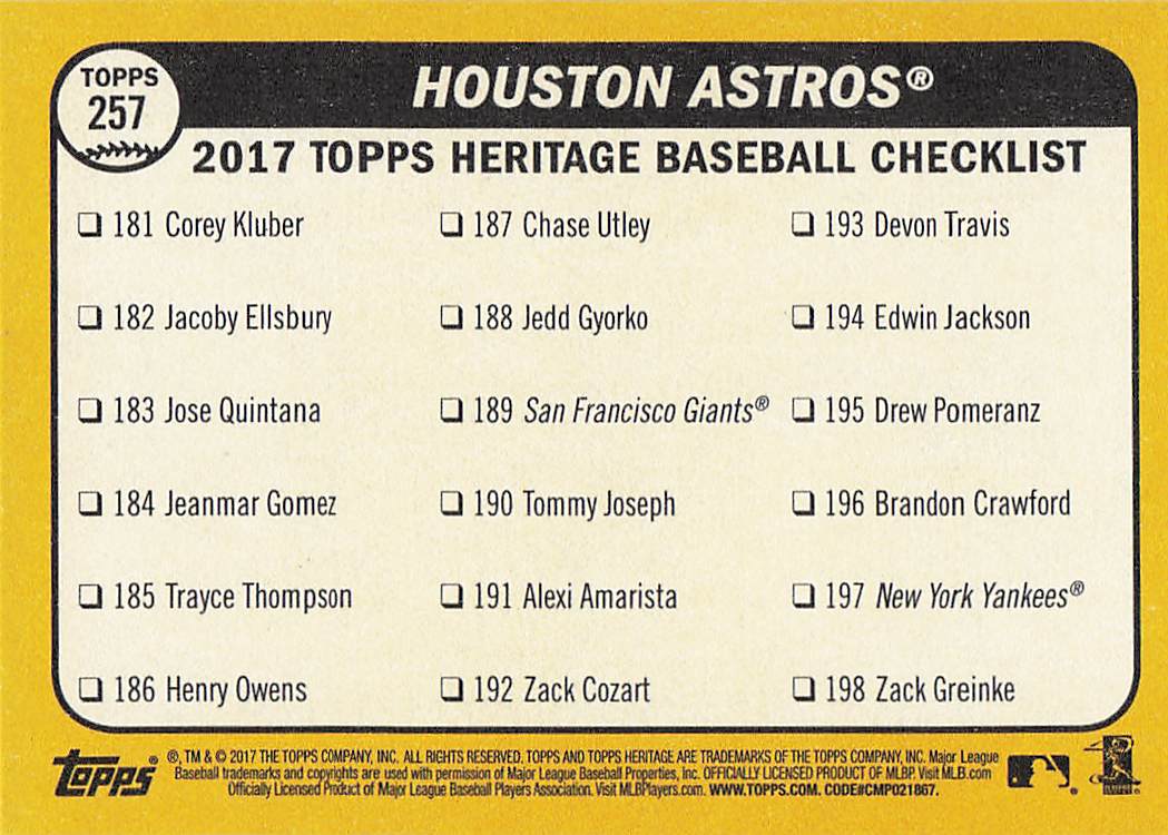 2017 Topps Heritage Houston Astros #257