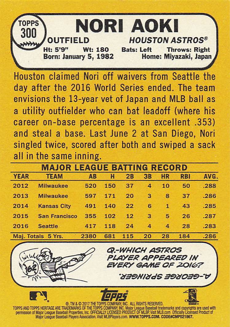 2017 Topps Heritage Nori Aoki #300