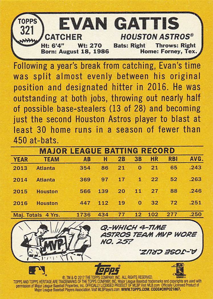 2017 Topps Heritage Evan Gattis #321