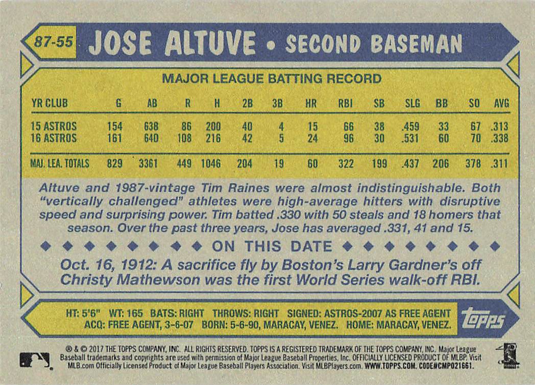 2017 Topps 1987 Topps Baseball 30th Anniversary Jose Altuve #87-55