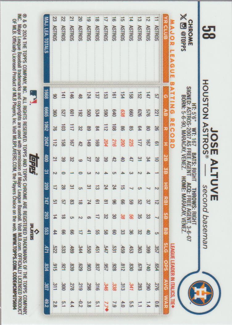 2024 Topps Chrome Jose Altuve #58