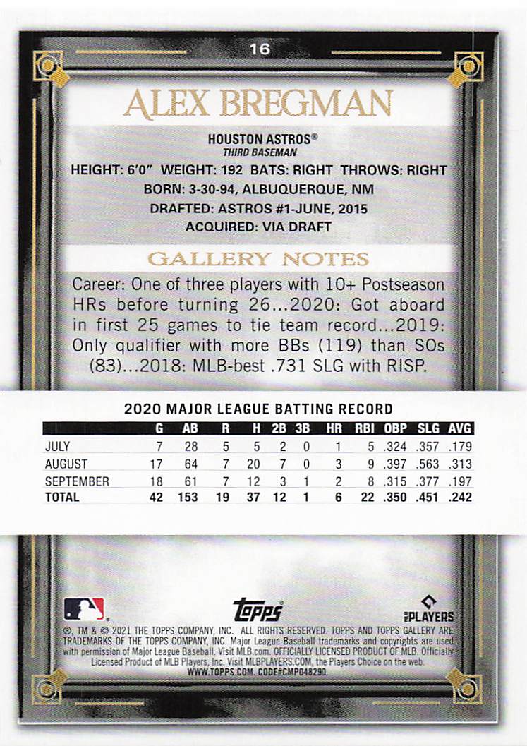 2021 Topps Gallery Rainbow Foil Alec Bregman #16