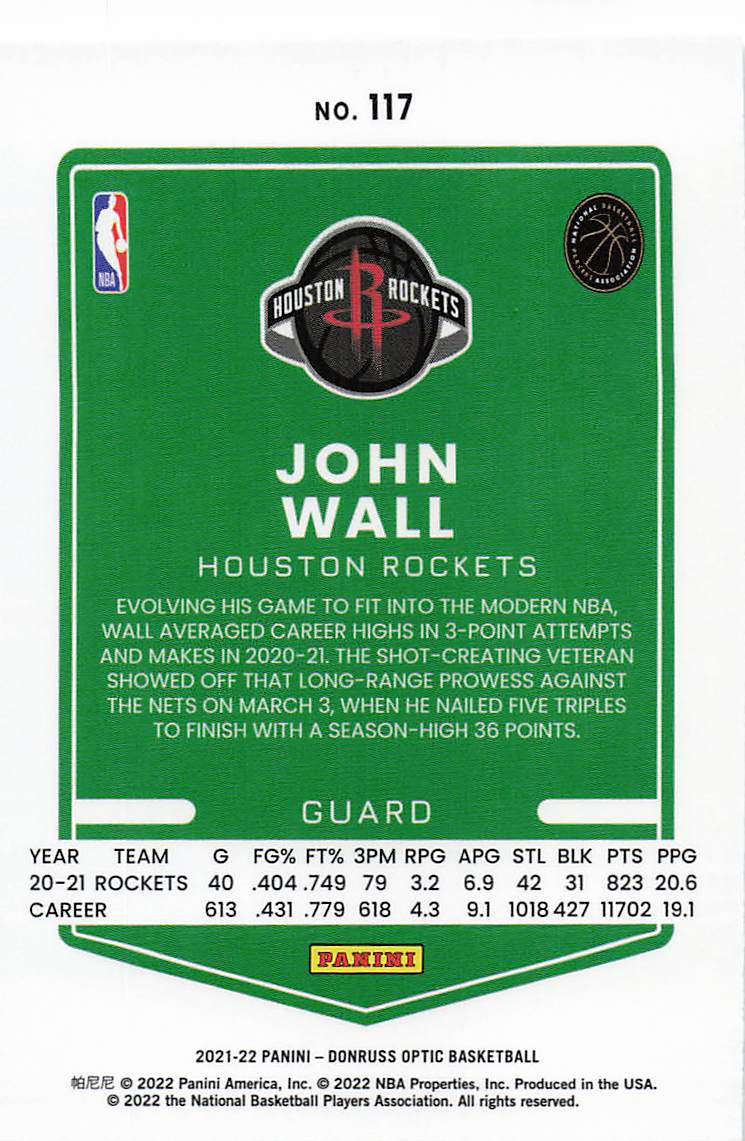 2021-22 Donruss Optic John Wall #117