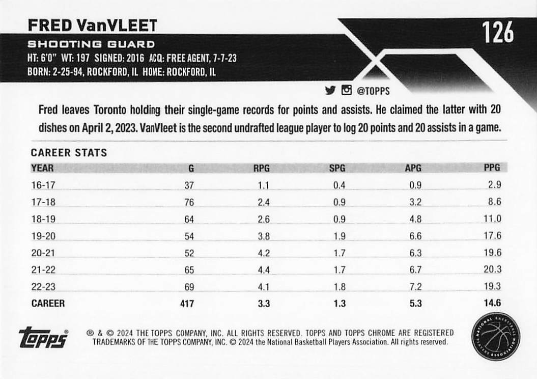 2023-24 Topps Chrome Basketball Fred VanVleet #126