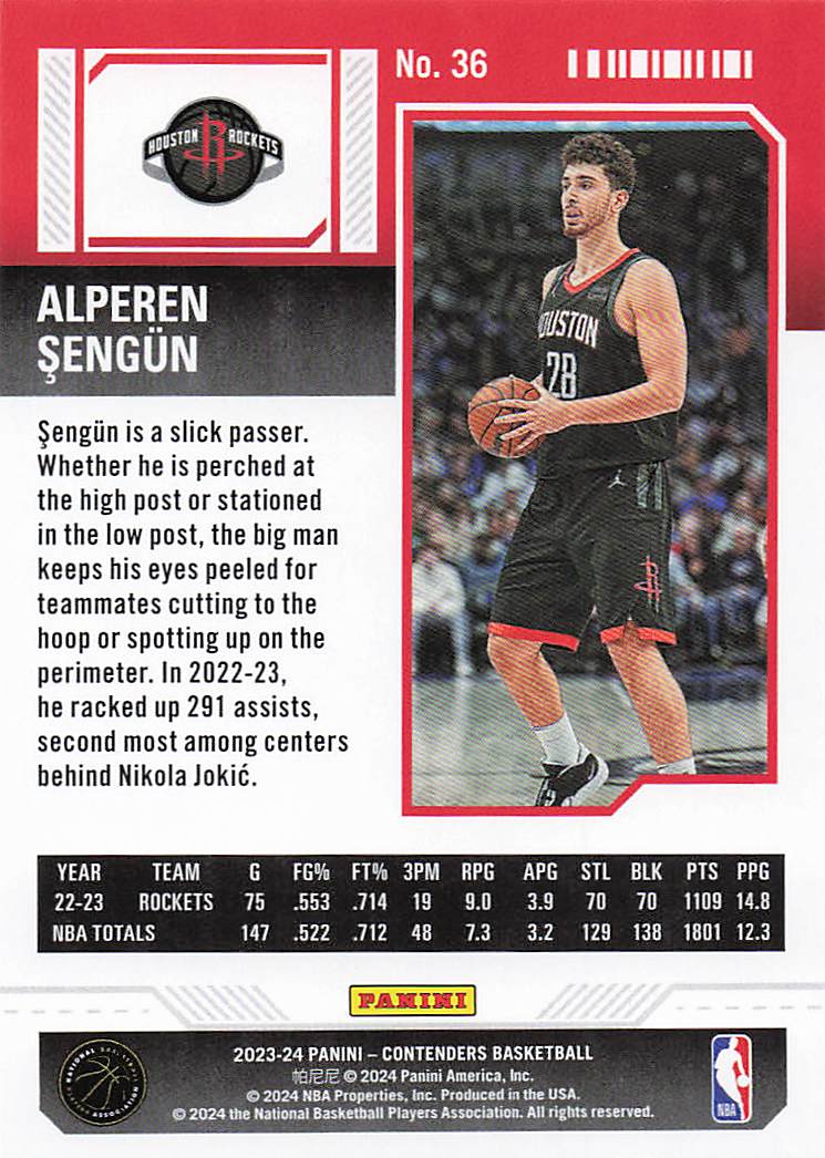 2023-24 Panini Contenders Basketball Alperen Sengun #36