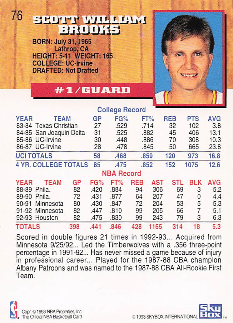 1993-94 NBA Hoops Scott Brooks #76