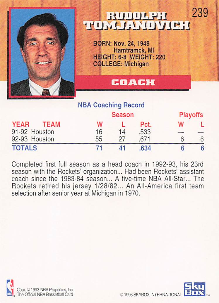 1993-94 NBA Hoops Rudy Tomjanovich #239