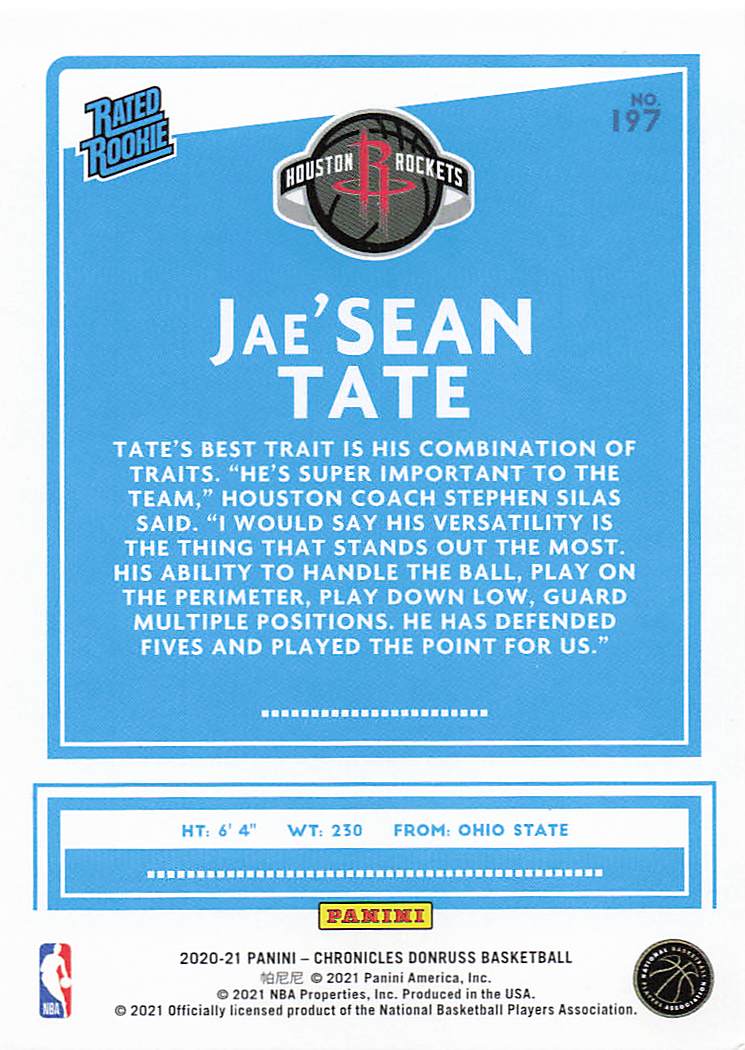2020-21 Panini Chronicles Donruss Jae'Sean Tate #197 RC