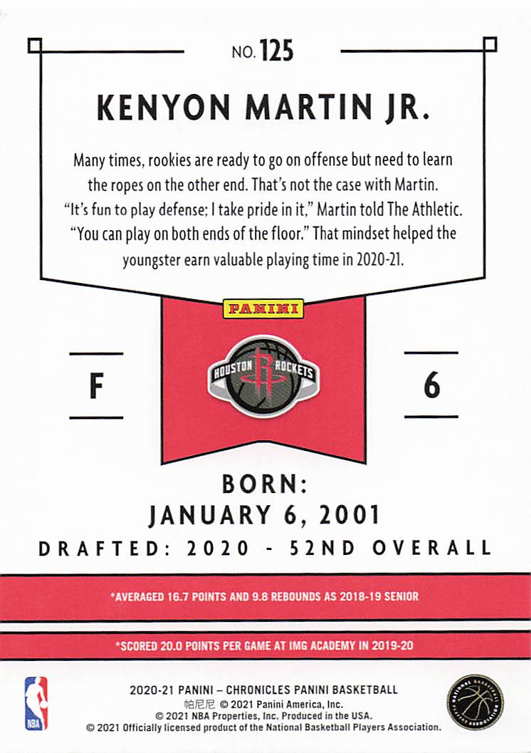 2020-21 Panini Chronicles Panini Kenyon Martin Jr. #125 RC