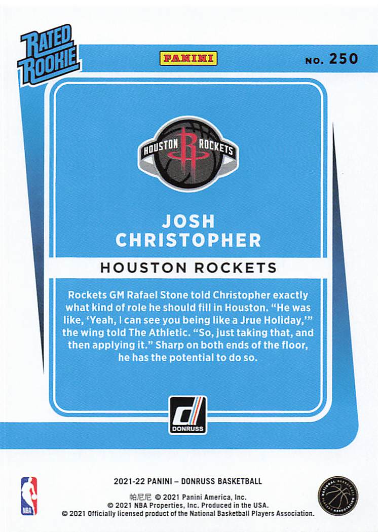 2021-22 Panini Donruss Josh Christopher #250 RC
