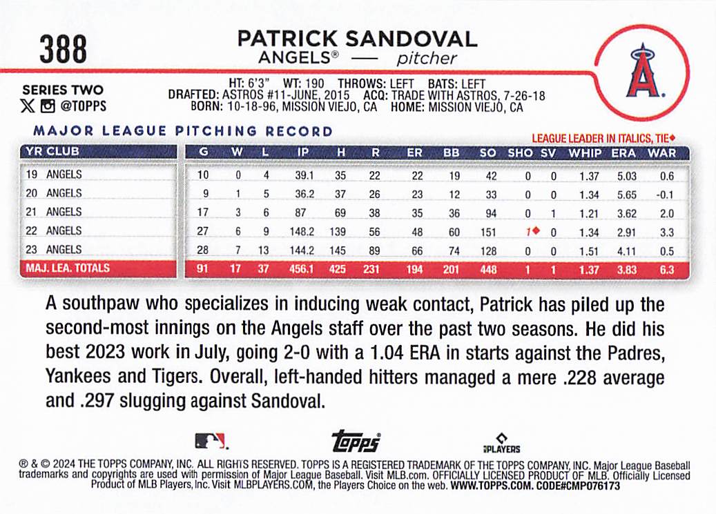 2024 Topps Baseball Series 2 Patrick Sandoval #388