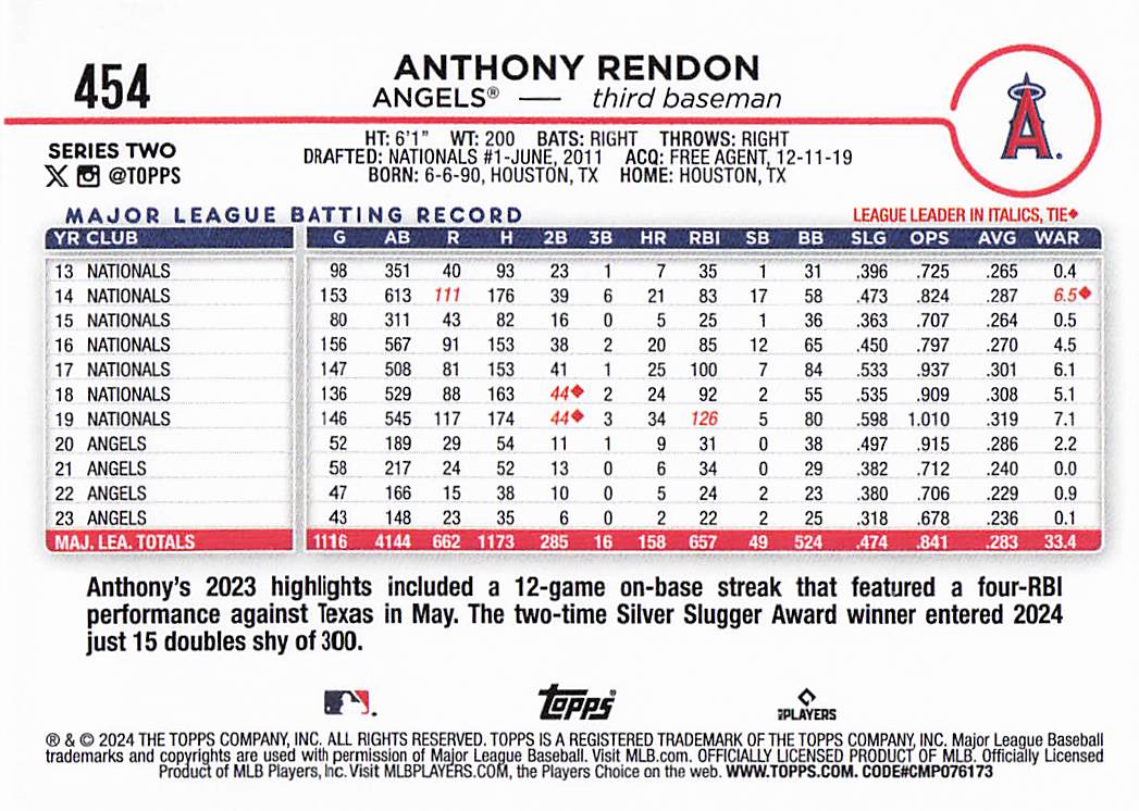 2024 Topps Baseball Series 2 Anthony Rendon #454