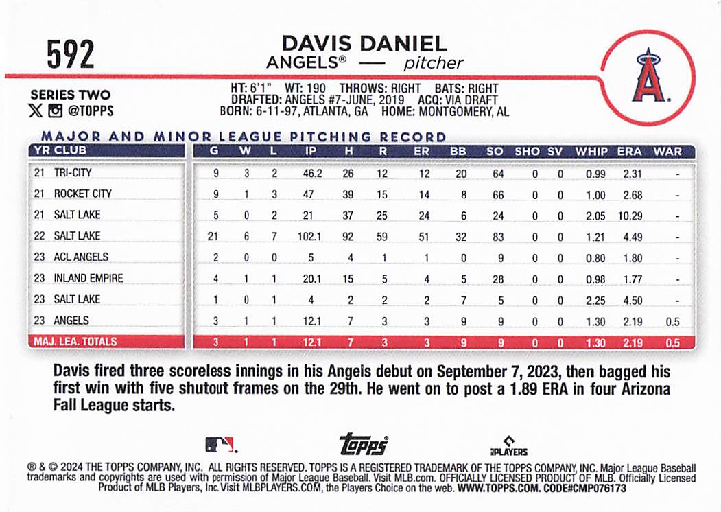 2024 Topps Baseball Series 2 Davis Daniel #592 RC