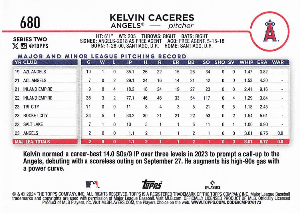 2024 Topps Baseball Series 2 Kelvin Caceres #680 RC