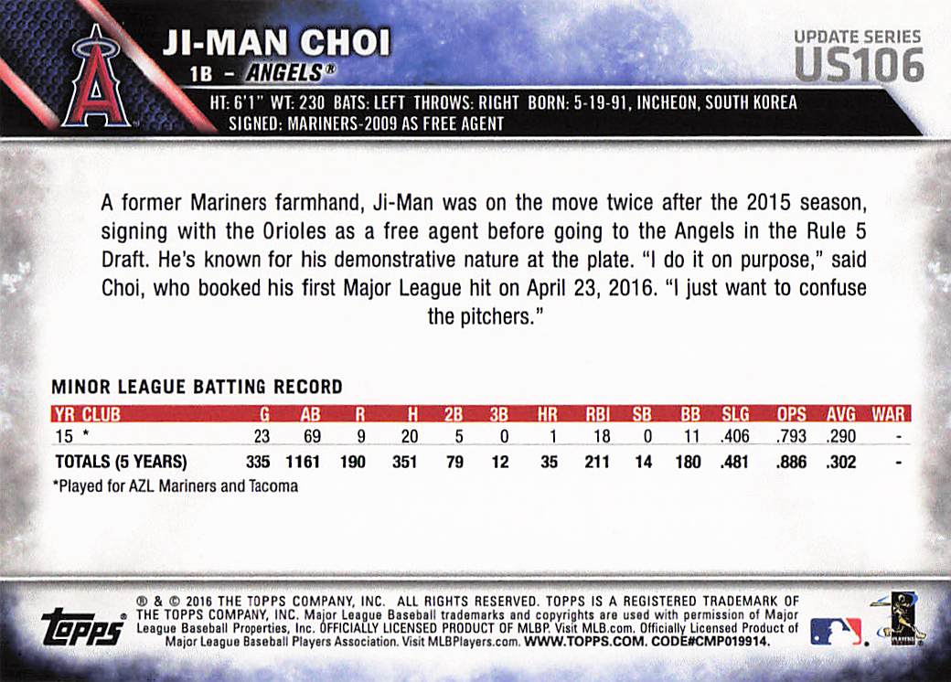 2016 Topps Update Series Ji-Man Choi #US106 RC