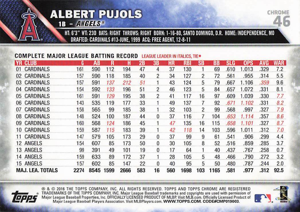 2016 Topps Chrome Albert Pujols #46