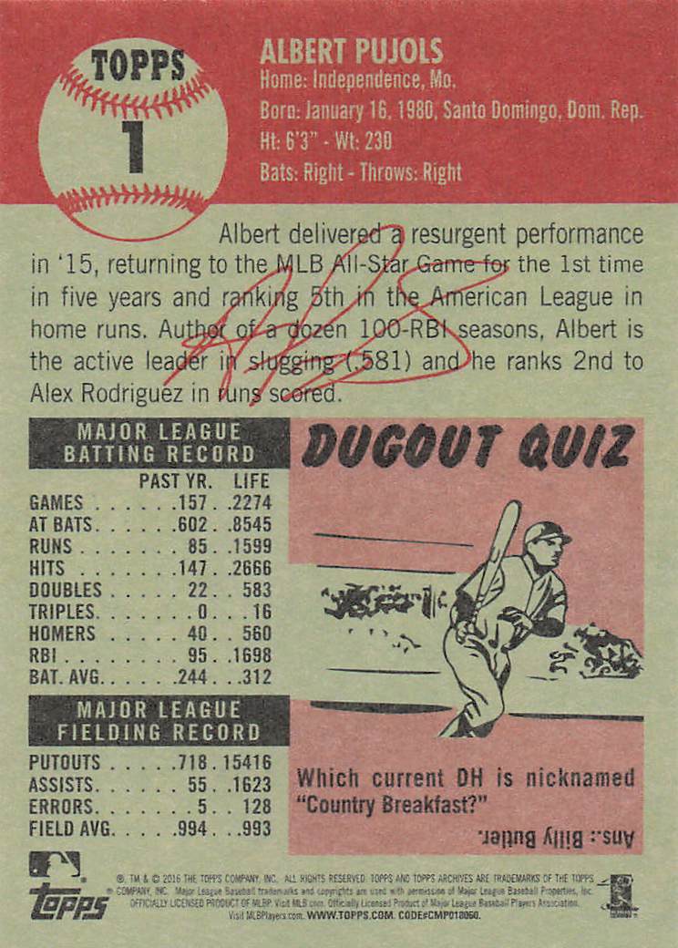 2016 Topps Archives Albert Pujols #1