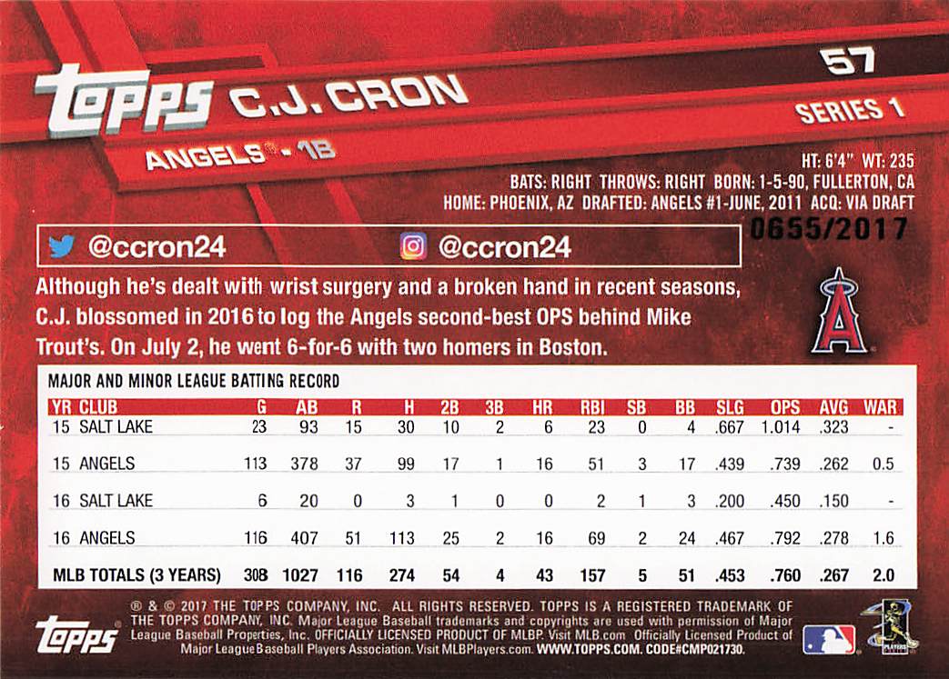 2017 Topps Gold 0655/2017 C.J. Cron #57