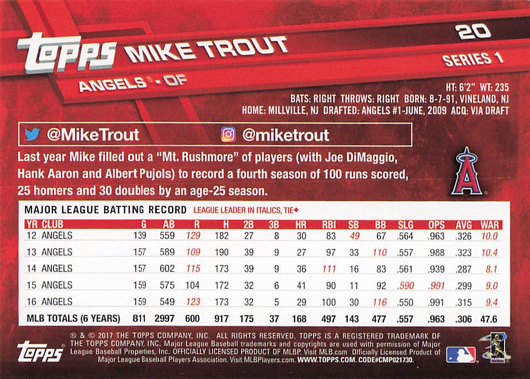 2017 Topps Mike Trout #20