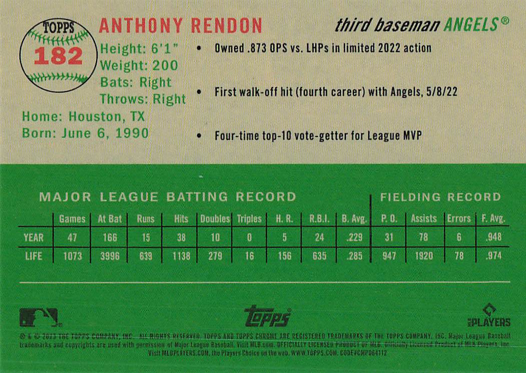 2023 Topps Chrome Platinum Anniversary Baseball Anthony Rendon #182