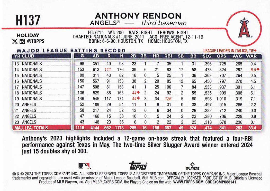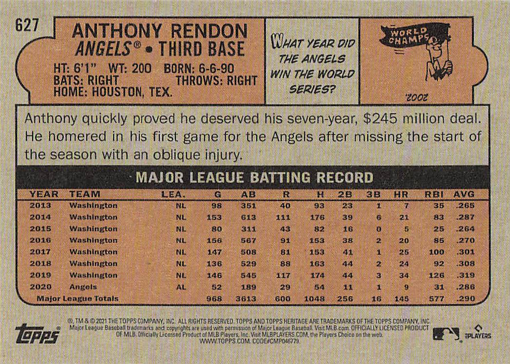 2021 Topps Heritage Baseball Anthony Rendon #627
