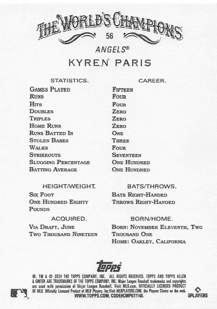 2024 Topps Allen & Ginter Kyren Paris #56 RC