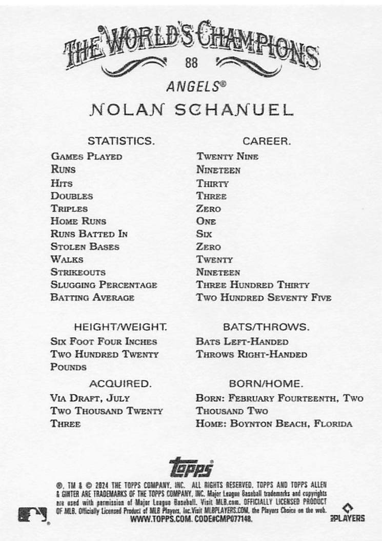 2024 Topps Allen & Ginter Nolan Schanuel #88 RC